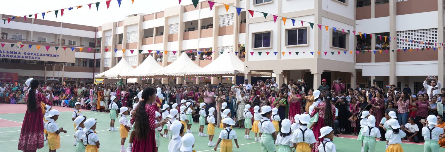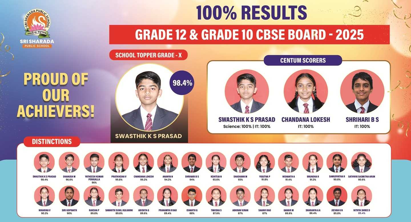 Welcome to Sri Sharada Public School, Mysuru! The academic environment at the school is dynamic and effectively adapting to changes in the education landscape. The school is recognized by the Government of Karnataka and is also affiliated with the CBSE board, providing educational services in English medium from Nursery to Grade XII. The school has an outstanding record of achieving 100% results, with a high number of distinctions and first-class grades in board examinations to date.